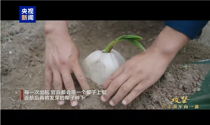 一名水兵,将一个椰子带到艇上,在数月的远航过程中,这个椰子都开花了。待完成战斗值班任务后,核潜艇靠港后,他上岸将开花的椰子直接种到了椰树林中。