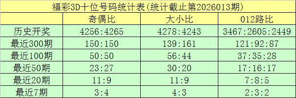 开奖回顾:福彩3D第2026013期奖号为:513。奖号形态开出组六,奇偶比开出3:0,012路比为1:1:1,大小比为1:2。