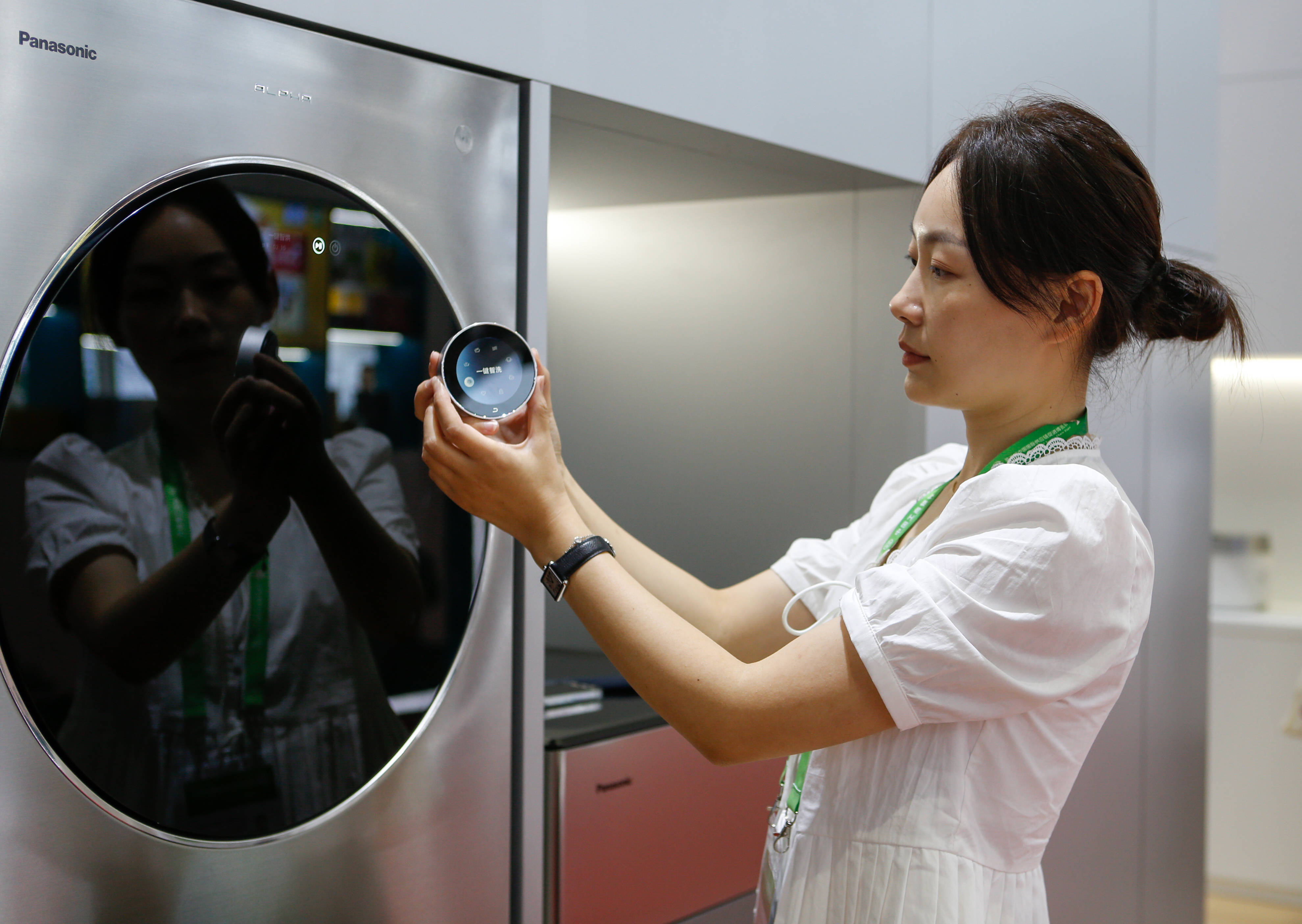 第三届中国国际供应链促进博览会上,参展商为观众介绍一款遥控洗衣机。新华社记者 丁洪法 摄李翔说,尤其是使用普通洗衣机的高温洗涤、强力搅拌模式,或与有金属扣件、粗糙面料的衣物混洗,损伤更大。