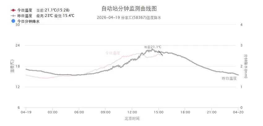 上海今天云系较多,阳光有些“偏心”。西南部上午就见阳光洒下,而中北部被厚实的云层阻挡,阳光勉强突破。最高气温在18~25℃之间,也是西南高东北低,徐家汇站21.6℃。整体维持中午温暖,早晚偏凉的状态。