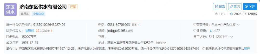 财经生活帮记者进行进一步检索,可以看到济南东区供水有限公司为济南水务集团有限公司全资子公司,2025年7月22日已注销。